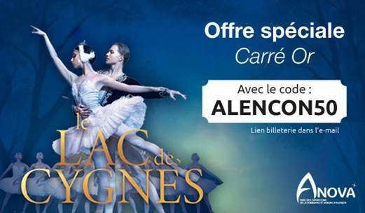 Pour profiter de cet avantage, rendez-vous sur le site de billetterie : https://www.festivalballet.fr/billetterielac-des-cygnealençon et utilisez le code de réduction suivant : ALENCON50